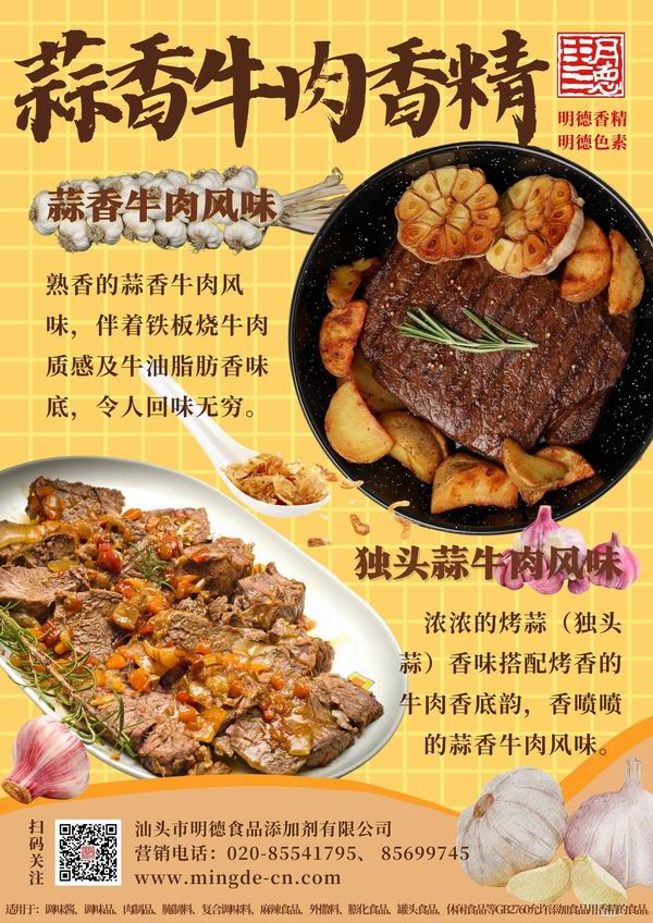 烤牛肉香精、鹵牛肉香精、蒜香牛肉香精,應(yīng)用在醬料、復(fù)合調(diào)味料、預(yù)制菜料包方面頗受歡迎,還能多方面應(yīng)用于調(diào)理肉、鹵制品等產(chǎn)品為其提香,提高產(chǎn)品附加值,一定程度上降低生產(chǎn)成本。