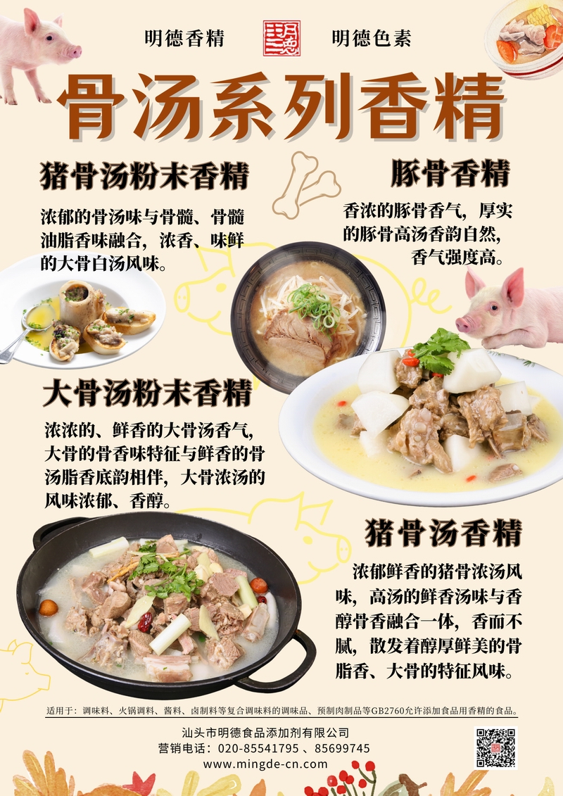 打造濃郁湯底的關(guān)鍵風(fēng)味解決方案——明德骨湯系列香精,為工廠產(chǎn)品加“骨”提鮮隨著高湯類產(chǎn)品在調(diào)味品、預(yù)制菜、湯包等領(lǐng)域的快速發(fā)展,消費者對“湯味還原度”和“骨香真實感”提出更高要求。